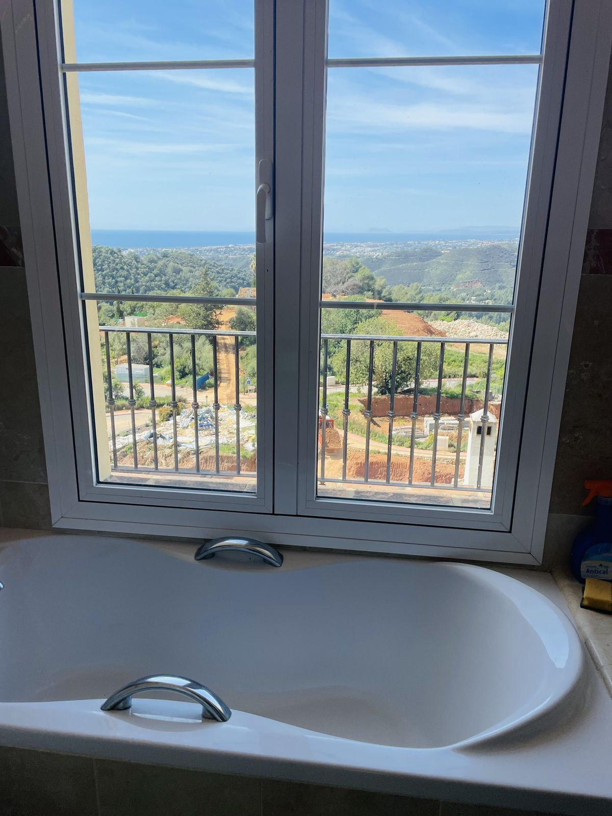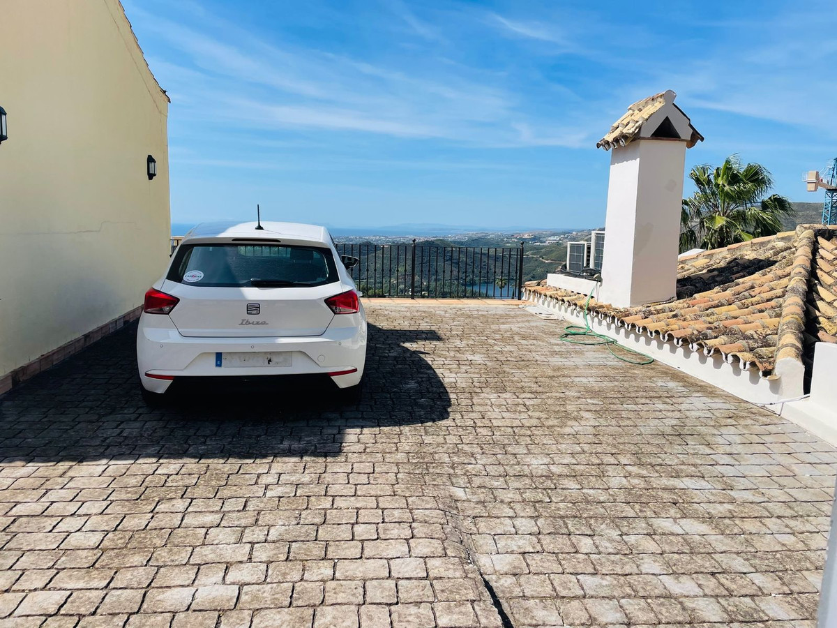 Set within the prestigious gated community of Sierra Blanca Country Club in Istan, this charming semi-detached villa offers breathtaking panoramic views of the Istan Lake and the Mediterranean Sea from every room, including both bathrooms. Just minutes from Marbella, Puerto Banús, and the beach, the property combines natural beauty, privacy, and exceptional lifestyle convenience.