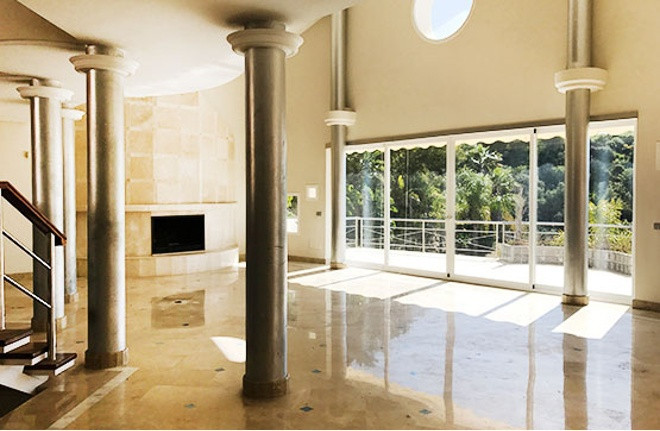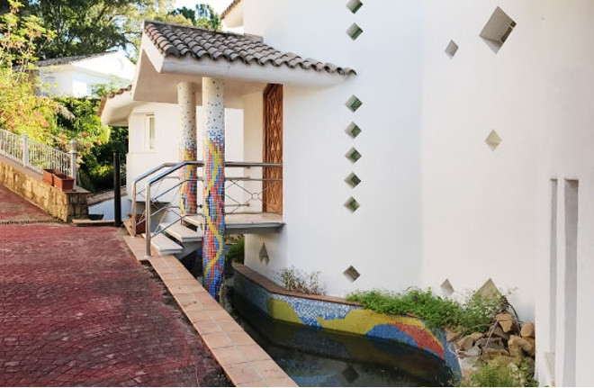 New Bank repossession. A detached 5 bedroom villa with a total built area of 1,383m² situated on a plot of 4017m² and located in Los Almendros, within the municipality of Benahavís, in a quiet area, just 16 km from Marbella and 75 from Malaga. The property is distributed in four levels, defined as a basement, where we find a bar area, a dressing room, a games room, a bathroom with a bathtub and shower and stairs that give access to the semi-basement, consisting of a large garage with space for several vehicles, a second games room, hallway to the 2 bedrooms with en-suite bathrooms and built-in wardrobes, one of them with access to a covered porch with an area of about 60 m2. The ground floor has a semi-furnished independent kitchen with a central island, living room with marble floors, dining room, a walkway leading to the distributor, 2 bedrooms with en-suite bathrooms and built-in wardrobes, as well as two spacious open terraces; and finally, on the upper floor, which is accessed from the street through the entrance porch, where there is the entrance hall, a corridor, a bedroom with dressing room, bathroom and a balcony.