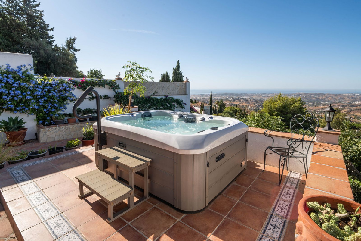 From its commanding position in Mijas La Nueva, this villa enjoys phenomenal panoramic vistas stretching from the Mediterranean coastline to the surrounding mountains, with spectacular sunsets as the sun dips behind the peaks. The views are breathtaking, inspiring, and truly unparalleled.