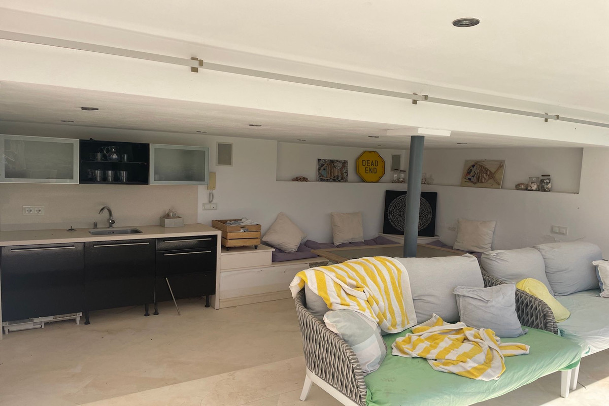 With the living space on one level, this familiar residence is well distributed with good size rooms, and the master bedroom with beautiful views over the golf course. The open plan living and kitchen area opening out onto a nice patio area is perfect to enjoy morning breakfast. There is a terrace looking over the golf course that leads down to the pool and garden area. On the lower level there is a good size pool and a chill-out area for entertaining, and a large space currently used for storeage with a lift leading up to the next level. Also, there is a carport for two cars.