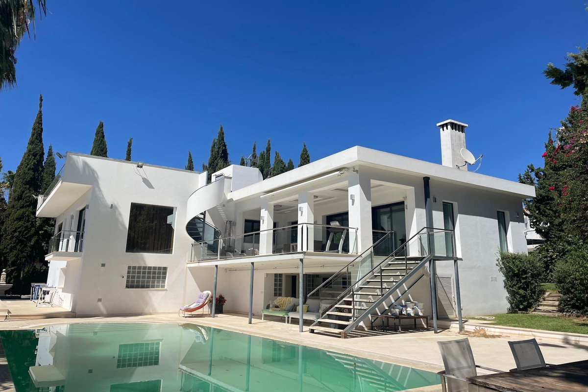 Well located villa boarding the golf course in the low-density residential area of Nueva Andalucía, in the heart of the Golf Valley, about 10 minutes from both Marbella and Estepona and around 45 minutes' drive from Málaga airport, the villa is very easily accessible, close to golf courses, all amenities, schools, and the iconic Puerto Banús.