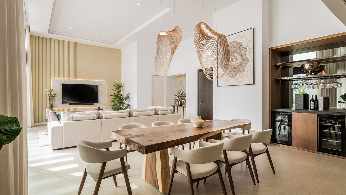 Priced at €4495000 : Bright and inviting home set in the quiet residential area of Los Naranjos Golf, in the heart of Marbella's Golf Valley. Well connected and convenient, it's just minutes from a wide range of restaurants, cafés, shops, international schools, top golf courses and Puerto Banús. The villa is built mainly all on one level plus lower level, quite rare to find on the market. It has a fresh, modern feel throughout. Decorated in a soft, neutral palette, it feels relaxed, luminous and welcoming. The layout is practical and flows well. On the main level, the bright, open-plan living and dining area connects seamlessly to a modern kitchen designed by BD Home & Living with Siemens appliances and a large central island which anchors the space, perfect for everyday living and entertaining alike. Large sliding doors open onto a generous terrace of approximately 180 m², seamlessly connecting the interior with the landscaped garden. Four en suite bedrooms and a guest toilet complete the ground floor. Outdoor living is a highlight. There's an L-shaped saltwater pool, a chill-out area with a fire pit for cooler evenings, a barbecue/bar area with TV, and a jacuzzi – perfect for entertaining family and friends year-round. The lower level of the home includes two additional bedroom suites, a guest toilet, cinema room, utility room, and a private garage for two cars. Features such as a home automation system, Aerothermal underfloor heating, solar panels and a fireplace in the main living area add both comfort and convenience.