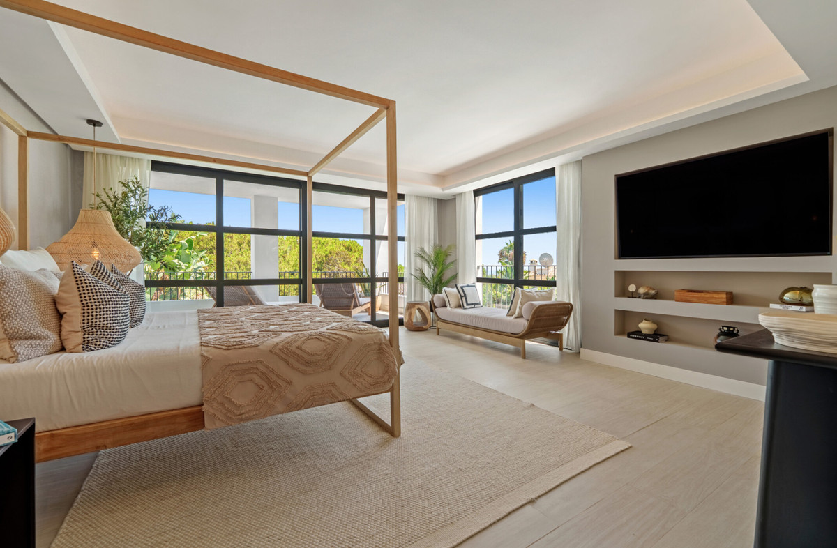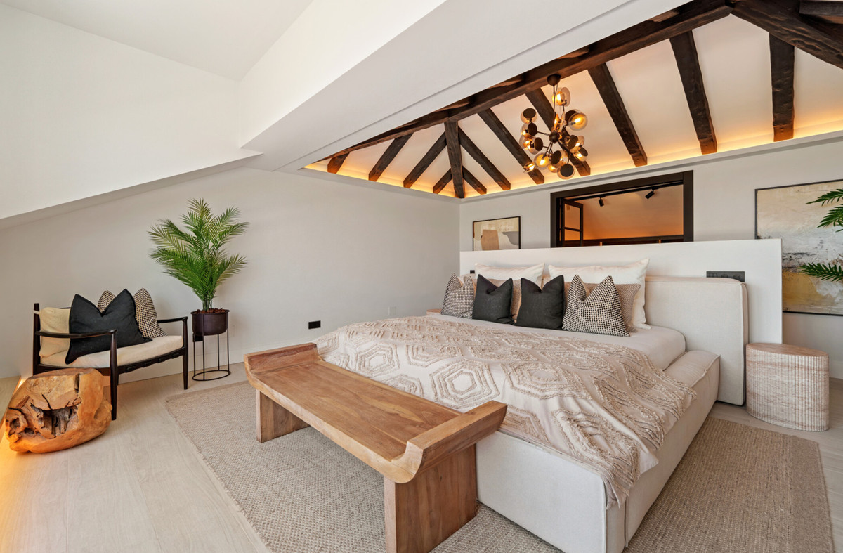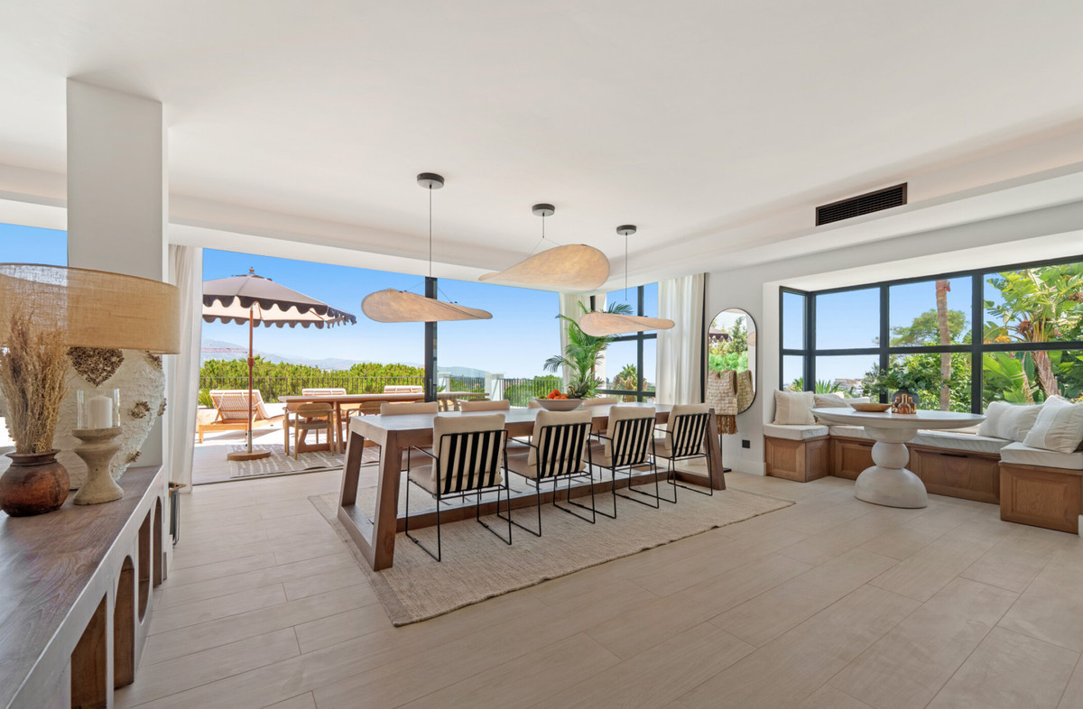 In the heart of prestigious Nueva Andalucía, just minutes from Puerto Banús, this extraordinary five-level 965 m² villa sits on a 1,474 m² plot oriented towards panoramic views of the Mediterranean Sea, La Concha mountain, and the surrounding landscape.