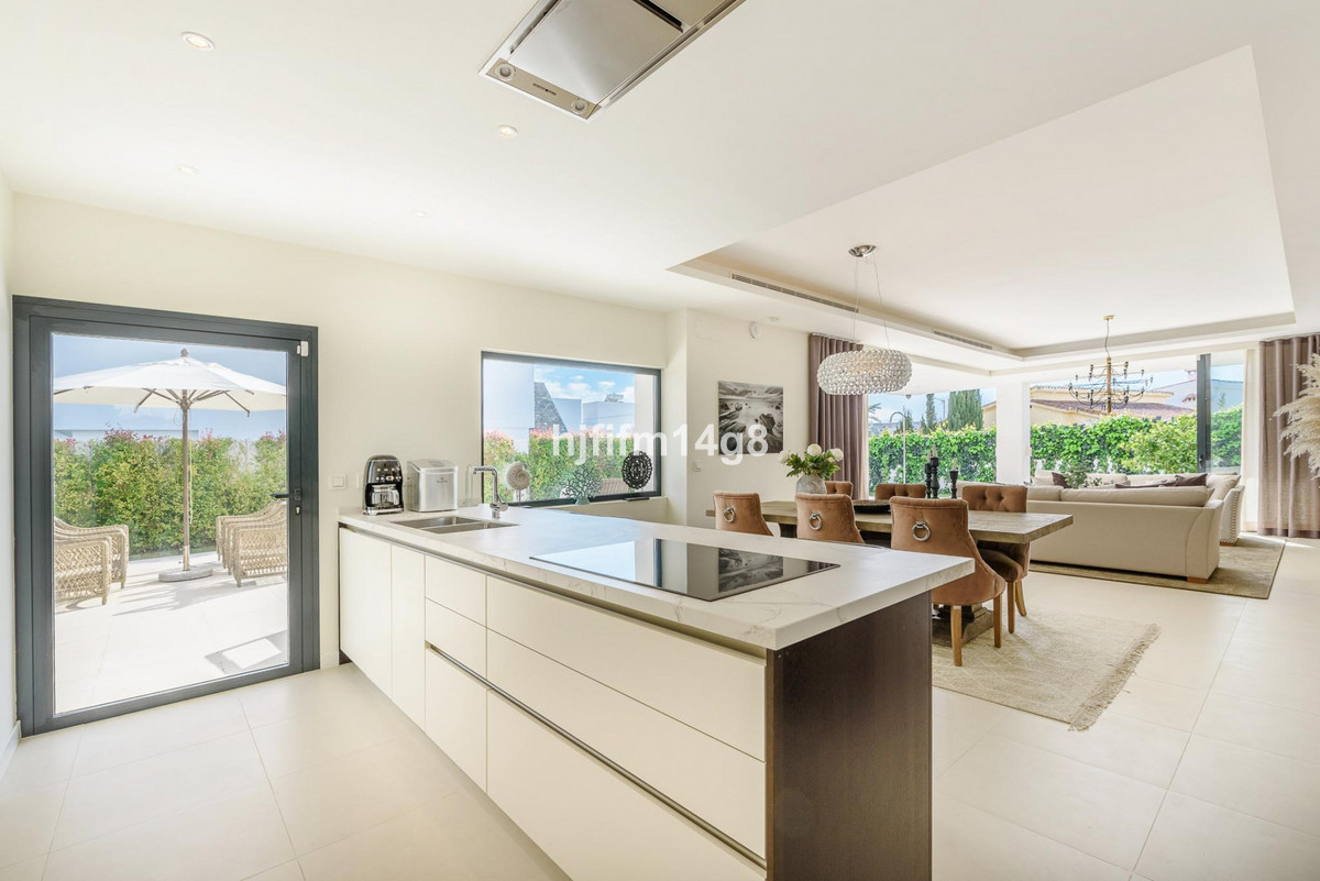 This gorgeous five-bedroom villa for sale is located just a short walk from the beach, offering the perfect blend of luxury, convenience, and coastal living. Situated in the desirable area of Linda Vista Baja, this villa is ideally positioned near the heart of San Pedro de Alcantara and only a 10-minute drive to five renowned golf courses, making it an exceptional choice for families and golf enthusiasts alike. It simply ticks all the boxes – modern living, walking distance location and also fantastic rental potential!