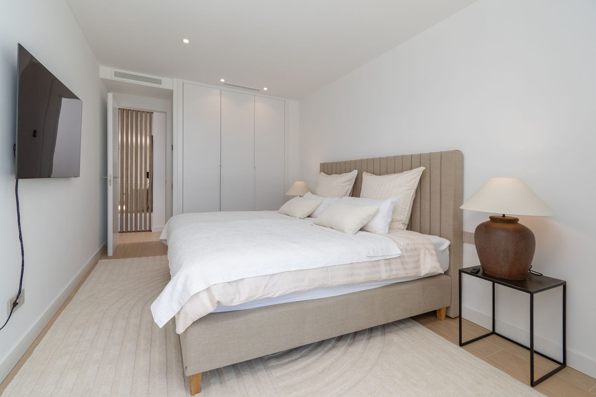 The elegant living-dining area flows seamlessly into the open-plan designer kitchen, creating a welcoming atmosphere for a sophisticated lifestyle and convivial moments. From here, you have access to spacious terraces with pleasant views over the garden, the pool, the golf course and, in the distance, the mountains. In addition, there is a private solarium. All of this invites you to make the most of the Mediterranean climate. Two private parking spaces complete the offer.