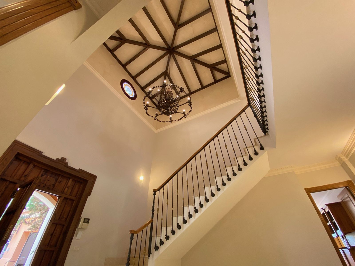 On the main floor we find; an elegant double-height entrance hall, a spacious and bright main living room with fireplace, a second independent dining room also with fireplace, large kitchen with dining room and laundry room from where you have direct access to the covered outdoor porch and barbecue area.