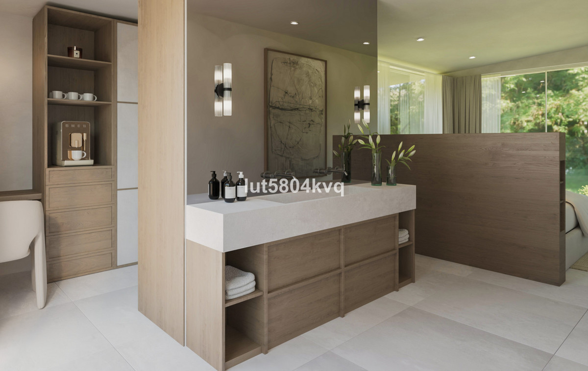 Upstairs, the villa features three generously sized en-suite bedrooms, each thoughtfully designed for comfort, privacy, and natural light. The master suite, located on this level, is a true highlight—featuring a stylishly centered bed, a spacious walk-in wardrobe, and a luxurious en-suite bathroom. This serene retreat offers uninterrupted panoramic views of both La Concha Mountain and the Mediterranean Sea, creating a breathtaking visual experience from the moment you wake.
