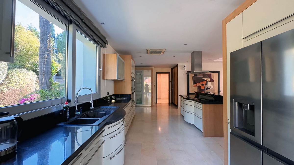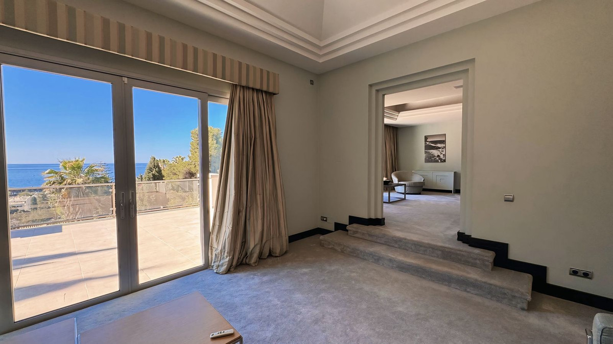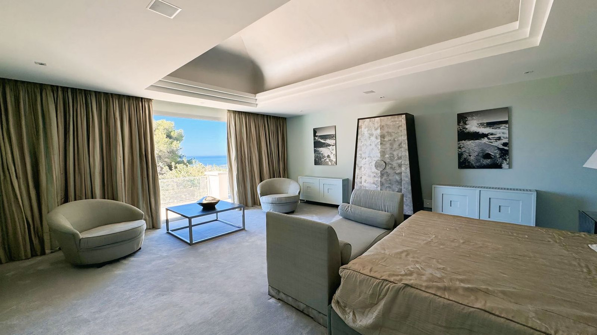 The first floor features a generously sized master bedroom with an en-suite bathroom benefitting from an abundance of natural light, a large walk-in wardrobe and a large private living room with private terrace. Also on this floor is a further large bedroom with walk in closet and en-suite bathroom. Both bedrooms enjoy excellent sea views. The lower level comprises of a laundry room, bodega, machine room, 2 car garage and a 1 bedroom guest/staff apartment with en-suite bathroom and separate access. Although the guest apartment is situated on the lower level it benefits from full length windows providing ventilation and natural light. There are also additional rooms to create a cinema room and gym if desired.