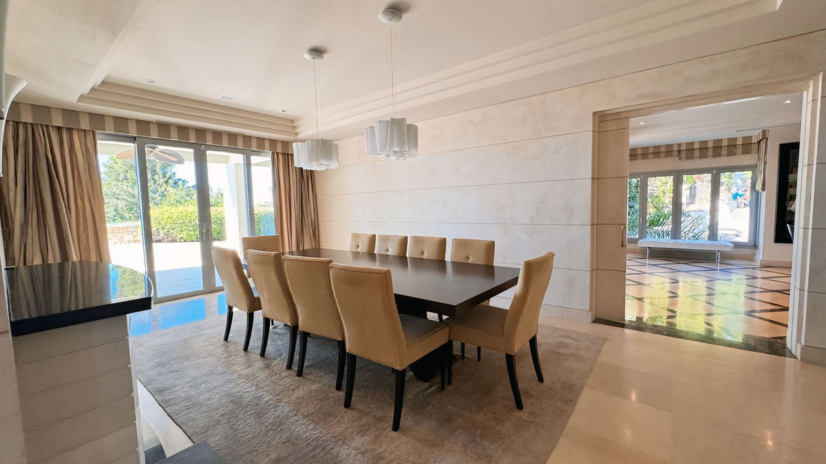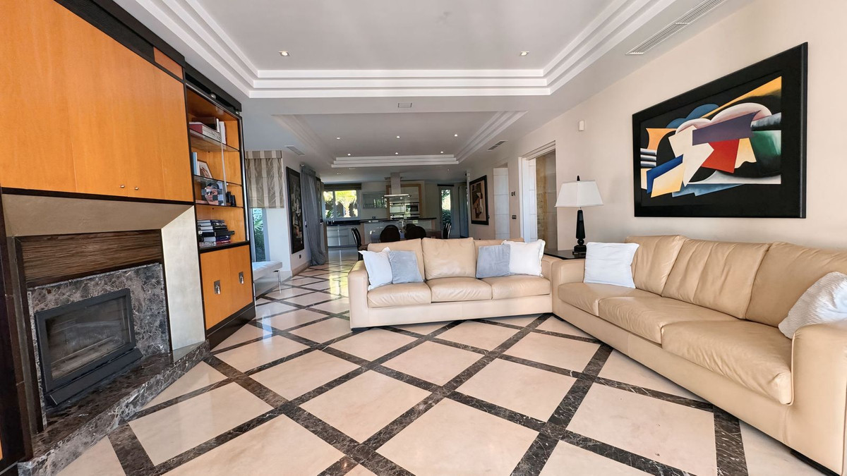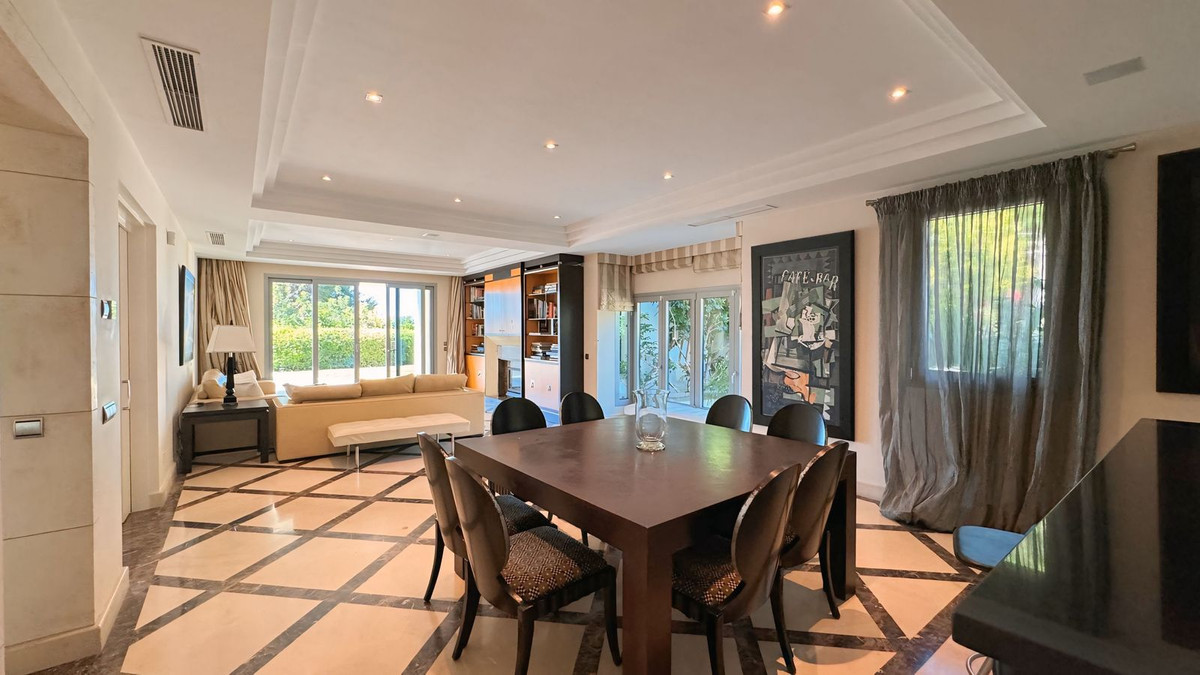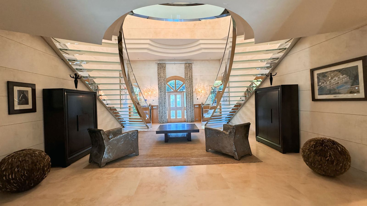 This substantial property is set in a privileged position within walking distance of the beach and all amenities, offering a high level of privacy being accessed via a private cul-de-sac. There is a private driveway with parking and a garage. The impressive double height entrance hall features a unique double staircase leading to a spacious living room with excellent sea views and access to the covered terrace. Adjoining the living room is a formal spacious dining area leading to a large open plan area including the kitchen, a breakfast dining area and a further living area with fireplace. There are impressive sea views from the dining room and kitchen/living areas with access to the main terrace. Also on this level is a guest cloakroom, lift access to the first floor and basement and 3 large en-suite bedrooms, ample fitted wardrobes and one with excellent sea views.